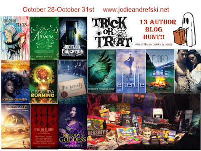 When you have collected the names of all 13 author "TREATS", head on over to complete the Trick or Treat Hunt Page Google Forms doc and enter the correct treat next to the corresponding author name. You can enter for BONUS chances to win via the Rafflecopter found on each author's website, by doing things like following them on Twitter or following their Goodreads page, or tweeting about the Hunt!a Rafflecopter giveaway